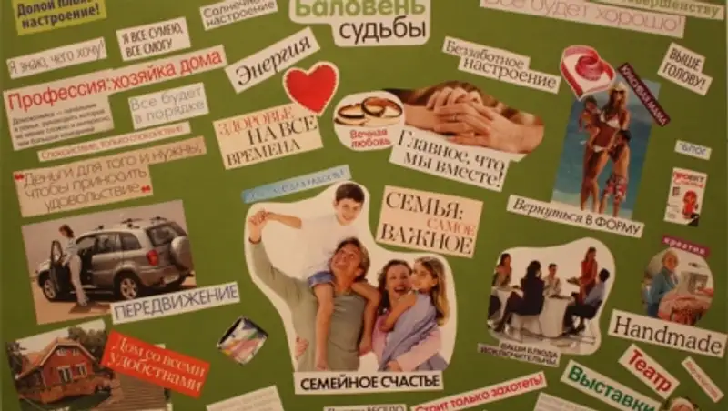 По сути, она представляет собой некий плакат, на котором размещены картинки с вашими желаниями. Тут срабатывает так называемый метод визуализации. То есть, если каждый день лицезреть то, чего вы хотите и желаете, то можно к этому прийти.