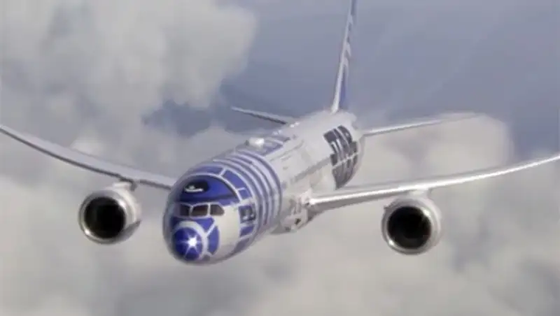 Самолет, имитирующий внешний вид робота R2-D2 из киносаги «Звездные войны», вошел в состав флота японской авиакомпании All Nippon Airways (ANA). Об этом сообщает Chanel NewsAsia. Первые международные полеты Boeing-787 Dreamliner, получивший название ANA Star Wars, совершит осенью 2015 года. В какие именно города будет летать самолет, неизвестно, передает Lenta.ru.