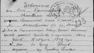 Услышав эту историю, вспомнил, что в школьные годы автоматом заучивали стихи Александра Твардовского «Я убит подо Ржевом». В то время нам казалось, что это было давно, не с нами, в другой жизни и с другими людьми. Нашел эти стихи, перечитал. Каждое слово зазвучало по-новому, через призму конкретной истории конкретно живущих рядом людей. И послышалось, что будто бы его голос казахского воина-освободителя Абильды Амангаринова - вещает нам сквозь годы: