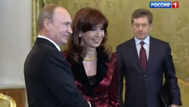 "Россия и Аргентина твердо отстаивают принципы верховенства международного права при центральной координирующей роли Организации Объединенных Наций. Россия поддерживает стремление Аргентины к проведению прямых двусторонних переговоров с Великобританией с целью скорейшего мирного урегулирования спора вокруг Мальвинских островов", — заявил на встрече с Кишнер Владимир Путин.