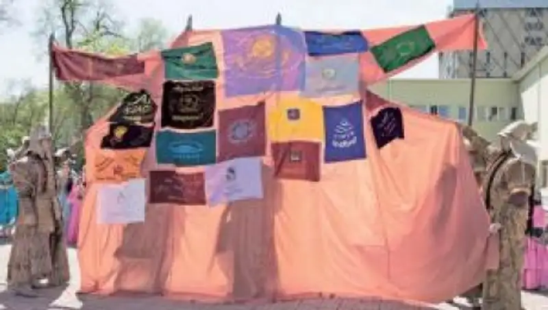 По мнению организаторов акции, эти отрезы ткани с названиями городов и пожеланиями мира, сшитые воедино в "Ел-Шапан", станут новым символом единства нации.
