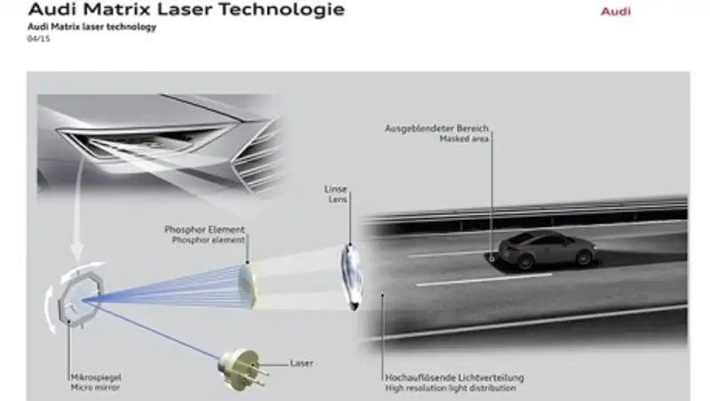 Матричная оптика с регуляцией светового пучка может подсветить дорожные знаки и предупредить пешеходов о приближении автомобиля. При этом она не слепит водителей со встречной полосы и с помощью последовательно зажигающихся динамических поворотников указывает направление маневра. Такие фары имеются, например, у Audi A6, A7, A8, TT и нового Q7. В лазерной оптике голубой луч проходит через линзу с желтым фосфором, формируя пучок белого света. Данная технология позволяет обеспечить более равномерное освещение дорожного полотна. Подобные фары установлены, в частности, на суперкар Audi R8 LMX, соперничавший с BMW i8 за звание первого в мире серийного автомобиля с лазерным светом. Новое поколение R8 также получило лазеры, сообщает cartimes.ru.