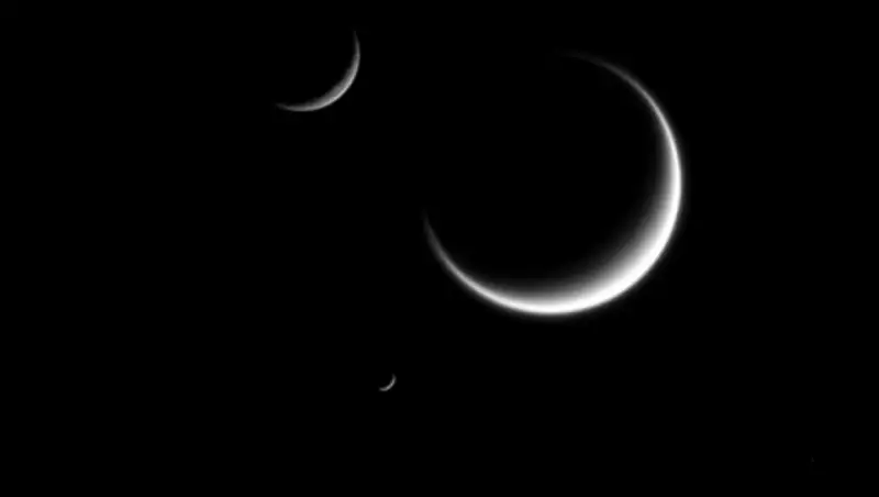 Станция Cassini сделала фотографию тройки полумесяцев Сатурна
