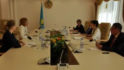 Сегодня министр здравоохранения и социального развития РК Тамара Дуйсенова провела рабочую встречу с министром труда, занятости и социальной защиты Республики Татарстан Эльмирой Зариповой, в ходе которой стороны обсудили перспективные направления сотрудничества в сфере социальной защиты и миграции. Об этом сообщает МИА Казинформ со ссылкой на пресс-служба МЗСР РК.