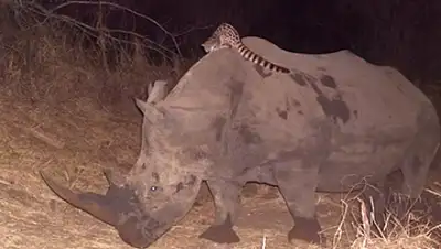 Экологам из африканских организаций Wildlife ACT и Ezemvelo KZN Wildlife удалось заснять на видео (с помощью камеры-ловушки), как генетта ночью оседлала носорога и катается на нем несмотря на все попытки травоядного сбросить хищного зверька. Об этом сообщает Lenta.ru.