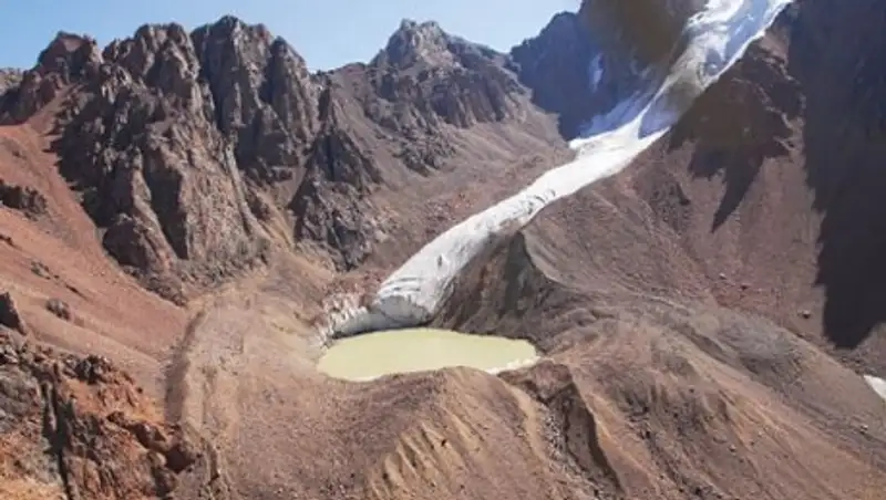 Моренные озера - Правый Аксай. Состояние моренно-ледникового комплекса стабильное. Приток воды в озере визуально составляет не более 60-70 л./сек. Поверхность морены сухая. Высота нулевой изомеры на 30 июля в 06.00 часов по данным Казгидромета 4189 метр над уровнем моря.