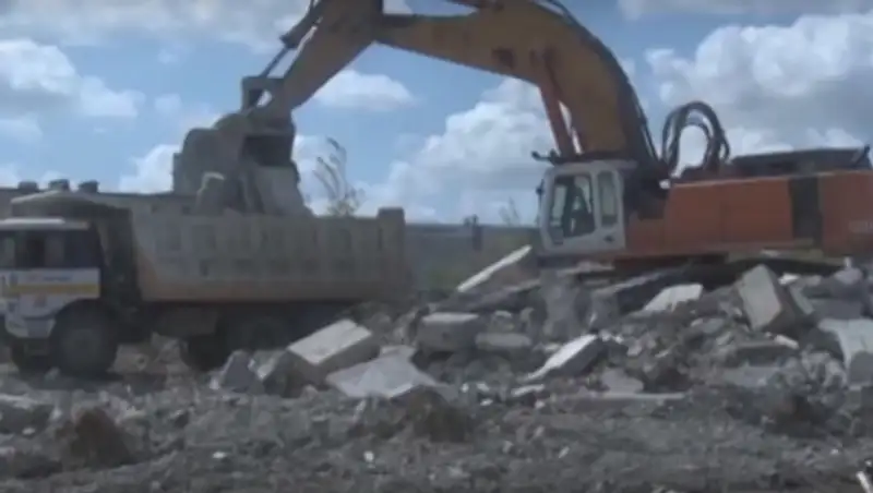 От некогда жилых микрорайонов остались голые участки земли. Местные власти обещают их облагородить в течение нескольких лет. К демонтажу аварийных многоэтажных домов в 7 микрорайоне приступили меньше месяца назад. Сейчас здесь одни руины. Дома буквально исчезают за считаные дни.