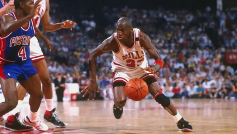 … игроки и тренерский штаб «Детройта» всегда обладали шаблоном с заготовленными ответами относительно тактики, будоражившей умы поклонников таланта самого невероятного игрока НБА. Молодой Майкл по праву считался ярчайшим событием в тогдашней истории баскетбола, самым красочным исполнителем, абсолютно инопланетным явлением. Сверхцентровые были и до него, противостояние суперклубов с разных концов США, построенных вокруг легендарных игроков, будет и после, но эмоции, привнесенные созерцанием таланта и уникальных качеств этой большой кошки, навсегда изменят историю спорта. Он был изящнее, быстрее, прыгучее, атлетичнее, мастеровитее всех спортсменов мира уже в 24, баскетбол казался для него настолько простым, словно он единственный, кто умел в него играть. Его действия в фундаментальном плане хирургически точны, он невероятно грациозен и одновременно несгибаем, он сгусток чистой энергии, плавающий по баскетбольной площадке, словно ему требуется дать четыре по 50 от борта до борта. 37 очков за матч? Пожалуйста. 8 передач за игру? Нет проблем. 15 трипл-даблов за сезон? Разве это может кому-то показаться сложным? Однако, как бы классно он не выступал, сколько бы матчей в плей-офф не выиграл, буквально не выгрыз, он рано или поздно упирался в коллектив Чака Дэйли, и здесь резко становилось больно. И морально, и физически.