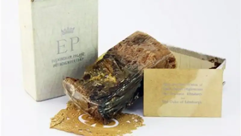 На торги выставлен один из двух тысяч кусков фруктового торта, который раздавали гостям во время церемонии в 1947 году.