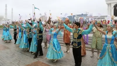 Праздничное субботнее утро началось с красочного парада-шествия представителей областей Казахстана у монумента «Қазақ елі». Грандиозность парада впечатлила своим масштабом, все богатство культуры и красота национальных костюмов предстали перед зрителями.