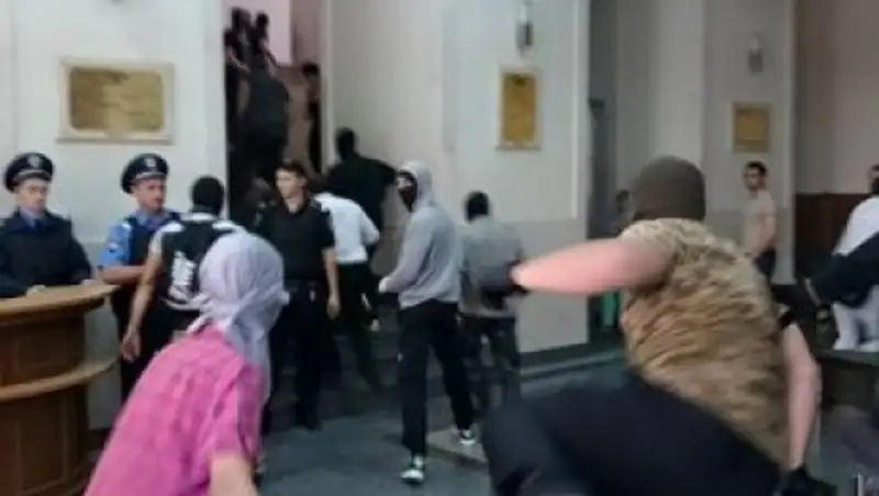 Люди, которые ворвались в здание мэрии, уже покинули ее. "В горсовете парни в балаклавах были минуты три. Побуянили у приемной Кернеса - разбили телефон - и вышли. На выходе сцепились с милицией. Вроде как - побили одного из сотрудников. После - сели в несколько автобусов и уехали", - сообщает корреспондент "Надзвичайних новин" Вячеслав Мавричев.