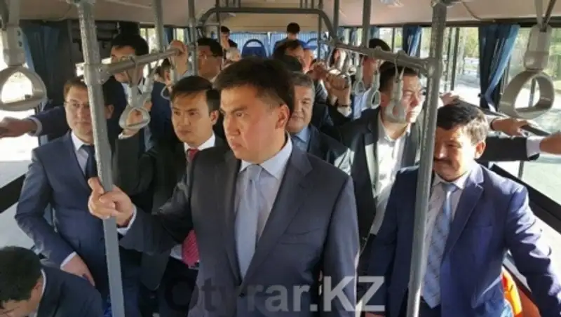 Чиновники, кто сидя на пассажирских местах, а кто держась за поручни автобуса, по инициативе главы города провели совещание, катаясь в общественном транспорте по Шымкенту. Прямо в автобусе Габидулла Абдрахимов раздавал поручения своим подчиненным.