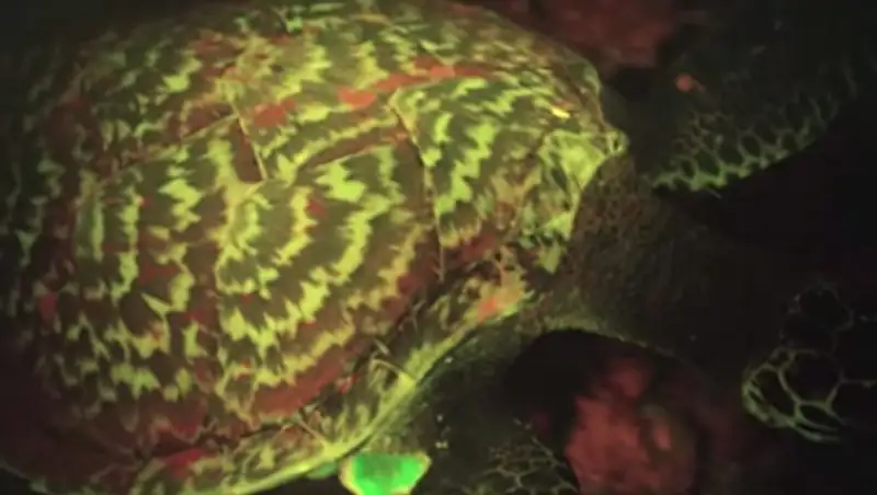 В Тихом океане около Соломоновых островов зоологи нашли единственную в мире светящуюся зеленым и красным цветом рептилию — ею оказалась находящаяся на грани вымирания морская черепаха бисса.