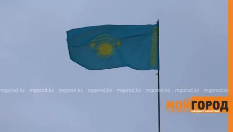 Вверх ногами повесили государственный флаг на Ледовом дворце в Уральске