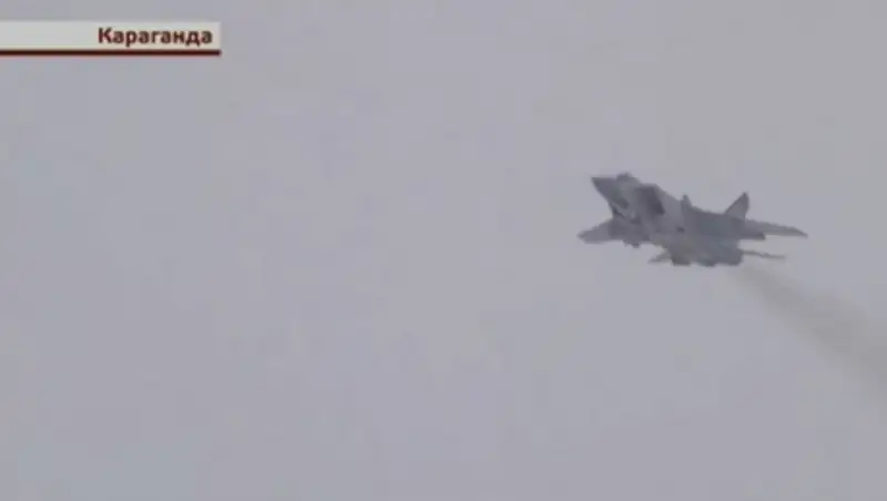В присутствии фото- и телекамер летчики на Миг-31 отрабатывали навыки пилотирования на средних и максимально низких высотах