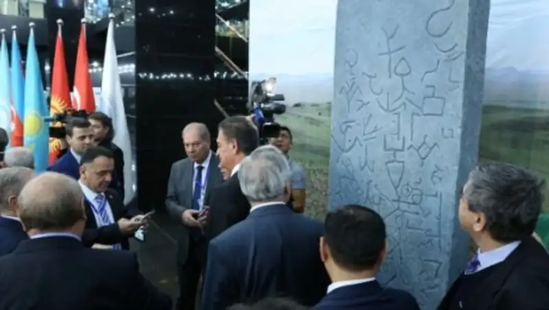 В столичном Дворце Мира и Согласия прошло торжественное открытие памятника, являющегося точной научной копией каменного монумента с родовыми тамгами из древнетюркского ритуального комплекса "Шивээт улан" в Монголии, передает Kazpravda.kz.