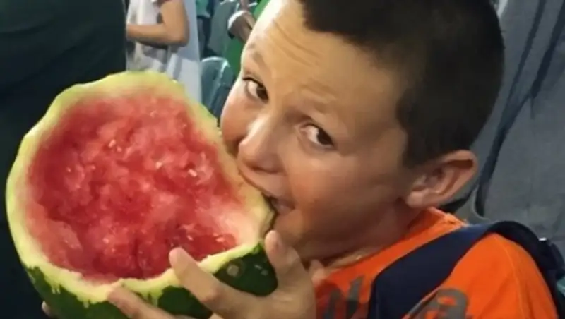 Съевший целый арбуз мальчик стал звездой интернета в Австралии