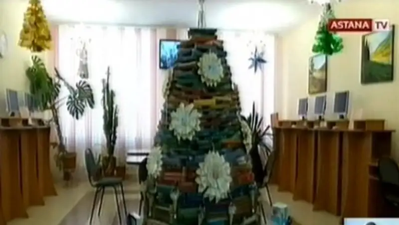 В Караганде «вырастили» новогоднюю ёлку из 2016 книг