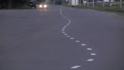 На одном из улицы Шымкента автолюбители засняли странную дорожную разметку. Судя по всему, до определенного участка, полосы были нормальные, а потом, как отметил голос за кадром, «начали пьянеть».