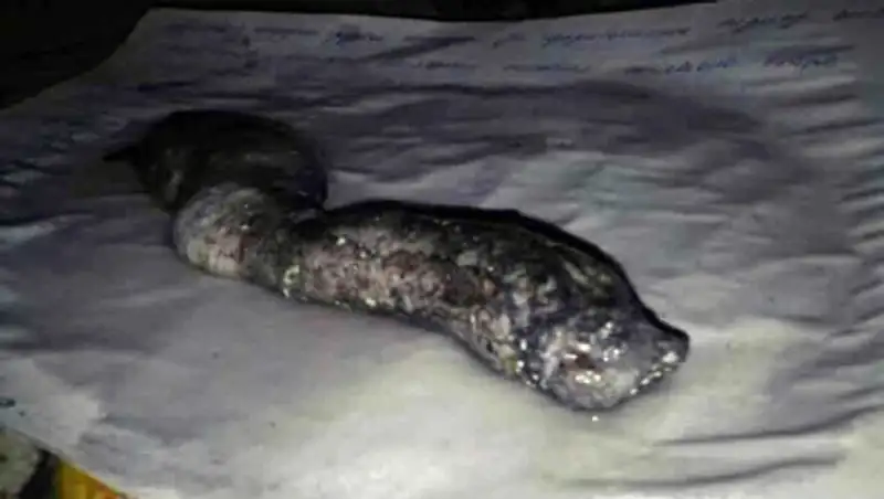 Напомним, что в январе этого года жители поселка Баганалы обнаружили в куче угля странное яйцо размером с футбольный мяч. Кокон разбили лопатой, из него вытекла слизь и выползло странное существо, похожее на огромного червя. Загадочное создание вскоре умерло, а его останки были доставлены на кафедру естественных наук Костанайского государственного педагогического института. Вчера руководитель кафедры Дамеля Конысбаева сообщила нам по телефону, что «существо» представляет собой фрагмент млекопитающего, по одной из версий – это часть кишки. Вот только какому животному принадлежала эта «кишка», специалисты не сказали. И есть одно обстоятельство, которое перечеркивает все эти догадки. Дело в том, что внутри червя были обнаружены…твердые ткани. И это весьма странно, ведь внутри кишок подобных образований не бывает.