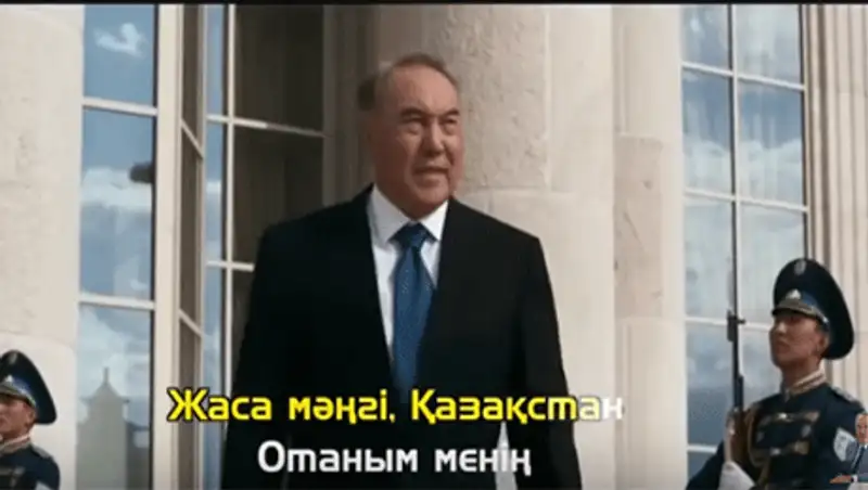 В песне есть такие слова: "Я – твой достойный сын, Казахстан! Я – честный воин Нурсултана... Сыновья свободной страны, Поднимите руки к небу!