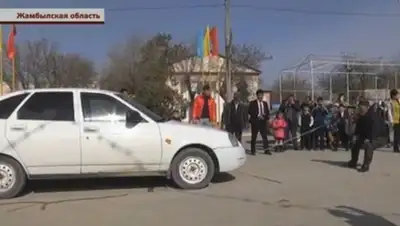 В жамбылской глубинке мужчина тянет авто, привязав ее к собственным ушам