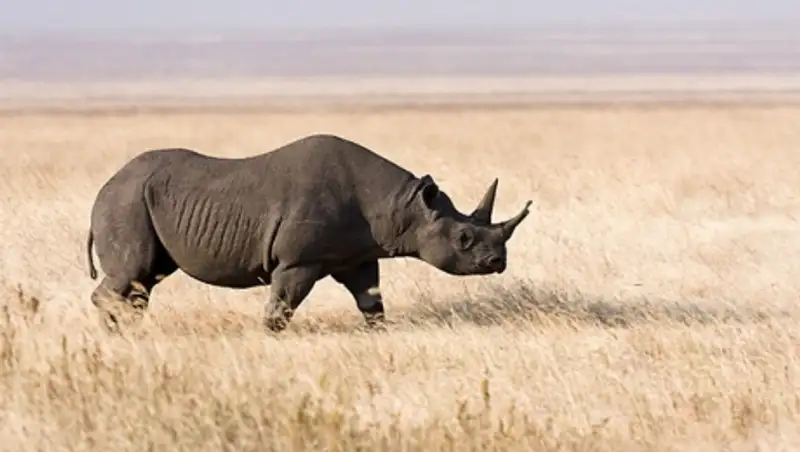 Черные носороги, которые обитают в окрестностях Намибии, известны ученым своей агрессией и пугливостью. Они готовы атаковать любой незнакомый предмет. Отметим, что животные достигают веса 1,5 т и разгоняются до 55 км/ч.