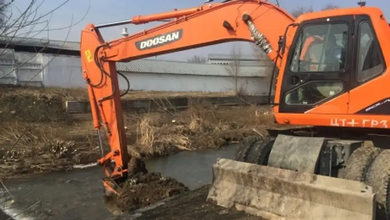 Пройдено 180 метров загрязненного и заиленного участка, при этом вывезено 568 куб. м. грязевой массы.