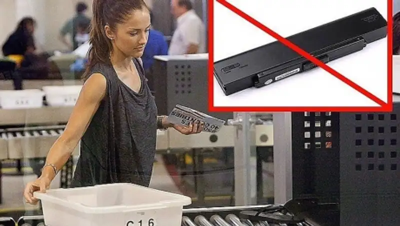 Портативные электронные устройства, содержащие встроенные литиевые батареи и запасные батареи с параметрами, превышающими пределы, перевозке в багаже пассажиров запрещены.