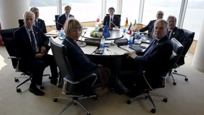 Во встрече принимают участие министр иностранных дел Японии Фумио Кисида, глава МИД Германии Франк-Вальтер Штайнмайер, госсекретарь США Джон Керри, министр иностранных дел Великобритании Филип Хаммонд, глава МИД Франции Жан-Марк Эйро, итальянский министр Паоло Джентилони и руководитель МИД Канады Стефан Дион.