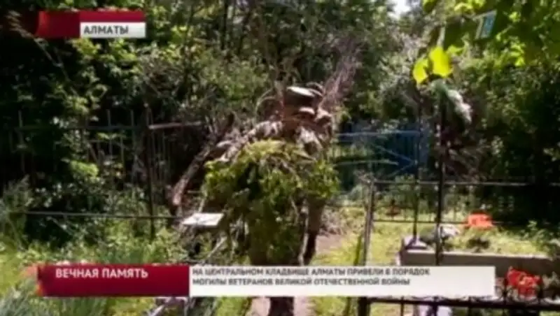 На центральном кладбище Алматы привели в порядок могилы ветеранов ВОВ