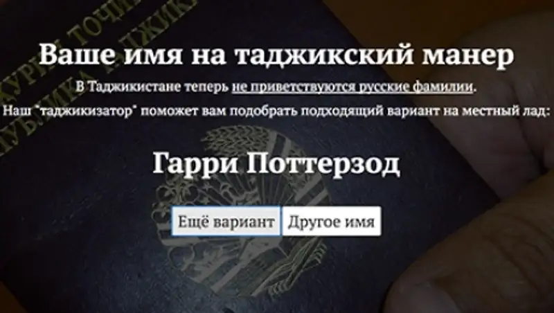 В сети появился сайт, который преобразует фамилии на таджикский манер. Сами авторы проекта назвали его «таджикизатором». Портал запустило издание «Настоящее время» в пятницу, 29 апреля, передает Lenta.ru.