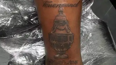В честь победы «Фейеноорда» в Кубке Нидерландов полузащитник Элджеро Элиа сделал татуировку на ноге, допустив ошибки в написании собственной команды. Фото татуировки появилось на странице игрока в Instagram.
