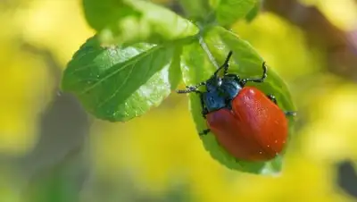 Жук-листоед (Chrysomela populi) в Лаеквере, Эстония.