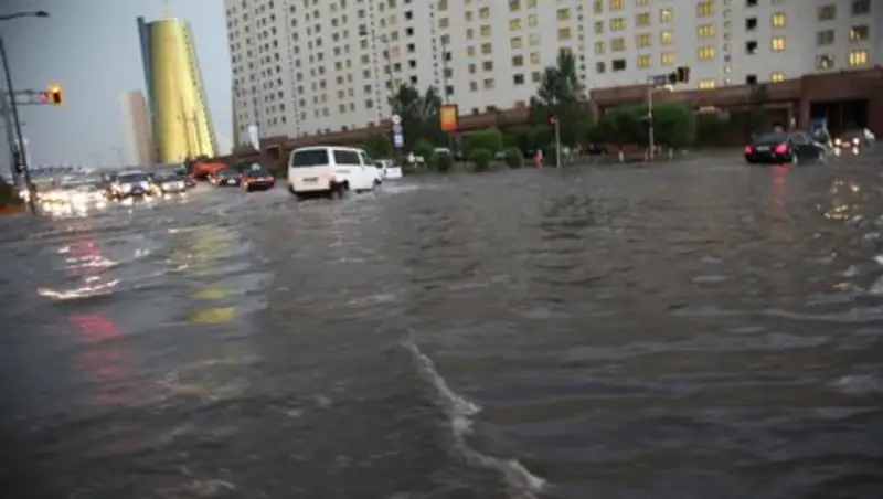 В минувшие выходные сильнейший ливень вновь превратил столицу Казахстана в итальянскую Венецию. Вода затопила едва ли не все крупные улицы, а на дорогах образовались заторы.