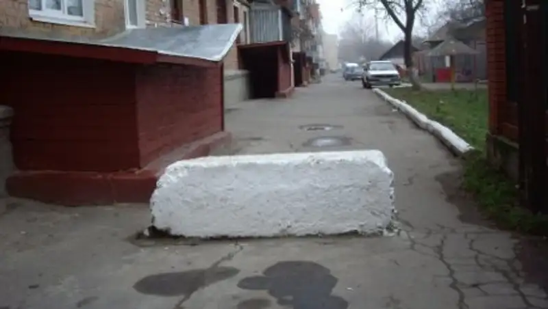 Во дворе дома 45 по улице Ерубаева и вовсе бетонные блоки. Их охраняют местные пенсионерки. Мол, блоки, защищают детей от машин. Водители же скорых бригад едва успевают заносить в личный список адреса старых препятствий, как появляются новые незаконные блоки.