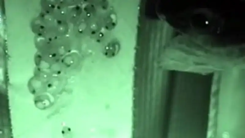 В Панаме биологи собрали ветки, на листья которых взрослые квакши отложили икру. Затем они сымитировали нападение змеи, раскачивая ветки. Весь процесс снимали на видео, добиваясь эффекта замедленного движения.