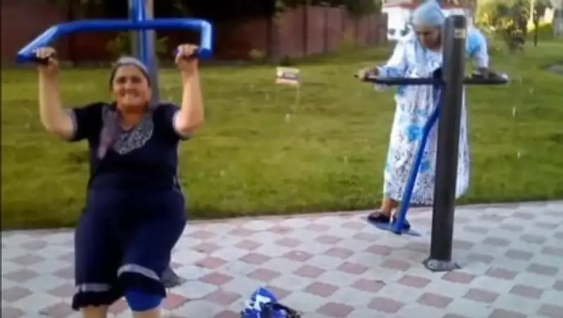 Бабушки одного из микрорайонов Шымкента решили каждый вечер укреплять здоровье и улучшать фигуру на спортивных снарядах. Для этого выбрали дворовую площадку где установлены турники, брусья и другие тренажеры, пишет Otyrar.kz.