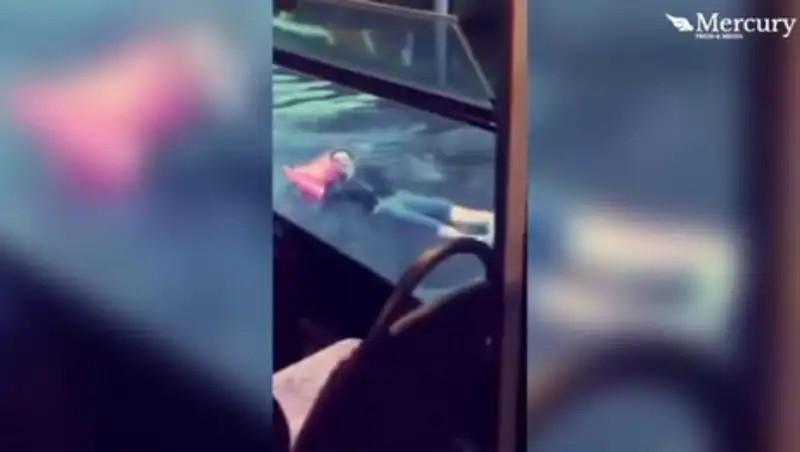 21-летний Джеймс Ноулс ехал с двумя друзьями в автобусе, как вдруг его спутники предложили поспорить на 30 фунтов стерлингоа (50 долларов), что он не сможет проплыть по затопленной улице на матрасе. Сказано – сделано, компания сошла на ближайшей остановке и отправилась в магазине, где купила надувное плавсредство. Через несколько минут Ноулc уже плыл по магистрали рядом с общественным транспортом.