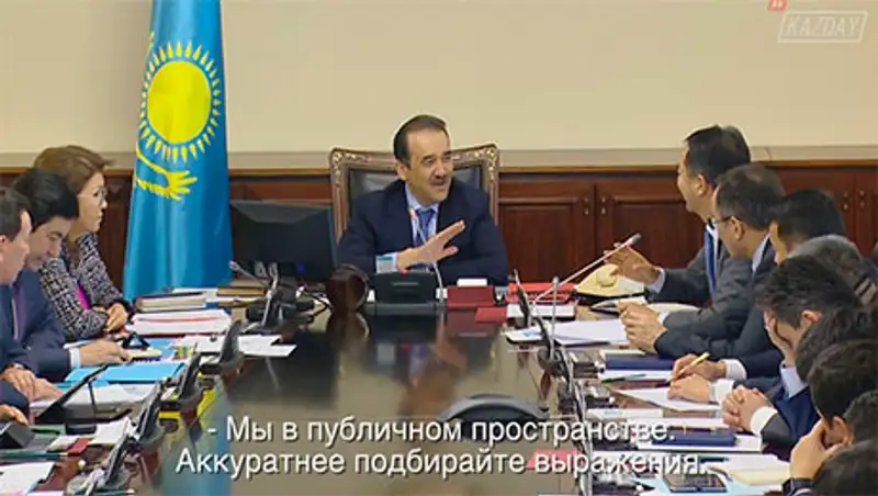 "Выбирайте выражения. Мы в публичном пространстве. Аккуратнее", - сказал с многозначительной улыбкой К.Масимов. На что Б.Сагинтаев сразу извинился и продолжил свой доклад.