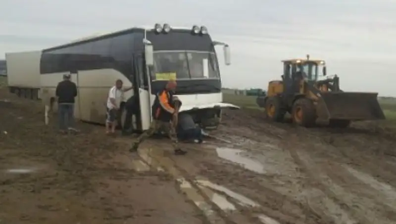 Оқиға орнына Лебяжі ауданының екі қызметкері шықты. Қатты жаңбыр салдарынан айналып өтетін жолдың 200 метрге жуық учаскесі шайылғаны анықталды. Батпақта «VOLVO» маркалы жолаушылар автобусы, «DAF» және «MAN» жүк автомобильдері батып кеткен, сондай-ақ жолдың екі бағыты бойынша келген 35 автокөлік, оның ішінде 225 жолаушысы бар бес рейстік автобус кептеліп тұрып қалған.