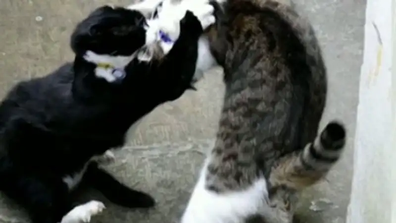 Ее участники - главный мышелов Даунинг-стрит, 10 Ларри и кот Палмерстон, находящийся на службе британского МИД. Очевидцы говорят, что животные бились не на жизнь, а на смерть, передает Первый канал СНГ.