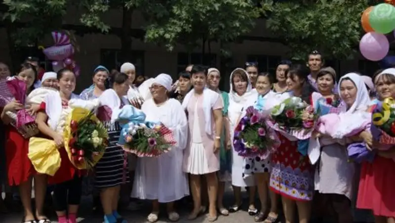 «Аналар шаңырақ шуағы» тақырыбында өткен игі шара Неке сарайында жалғасын тапты. Балқия Көмекбаева бастаған ардақты аналар Бәйдібек ауданынан келген Еламан Тұрарбек пен Гүлнаурыз Сейтбектің неке қию салтанатты рәсіміне қатысып, қалыңдыққа ақ орамал тарту етті. Жастарға орамалдың қасиеті жайлы айтып, инабатты келін, ақ жаулықты ана болуға тілектестігін білдірді. Өз кезегінде Гүлнаурыз қазақтың салтына сай орамалды басынан тастамайтын үлгілі келін болуға уәде берді.