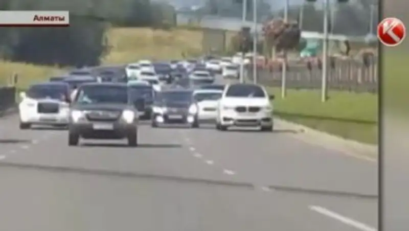 Свадебный кортеж сегодня бесчинствовал на дорогах Алматы. Автомобили представительского класса устроили на одной из самых крупных магистралей города настоящую анархию. Сначала машины виляли из стороны в сторону, а после из них начали доноситься звуки выстрелов, сообщает телеканал "КТК".