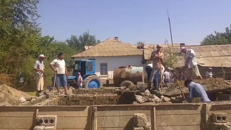 Жители Мактаральского района ЮКО строят дом для односельчанина