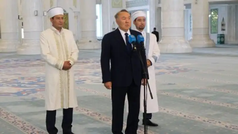 Президент Казахстана Нурсултан Назарбаев посетил главную мечеть страны Хазрет Султан в Астане вместе с представителями Правительства, среди которых - глава Администрации Президента Адильбек Джаксыбеков, председатель Сената РК Касым-Жомарт Токаев, председатель Мажилиса РК Нурлан Нигматулин, Премьер-Министр РК Бакытжан Сагинтаев, министр обороны РК Имангали Тасмагамбетов, председатель КНБ Карим Масимов, аким Астаны Асет Исекешев, министр культуры и спорта РК Арыстанбек Мухамедиулы. С главным имамом страны Глава государства прочитал молитву и обратился с поздравлениями к журналистам и присутствующим, передает корреспондент Zakon.kz.
