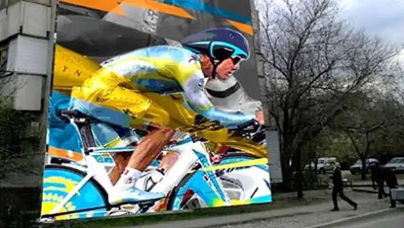 На фасаде одного из алматинских домов в Алмалинском районе, на пересечении улиц Толе би и Муратбаева, скоро появится изображение звезды казахстанского велоспорта Александра Винокурова, передает портал "Крыша".