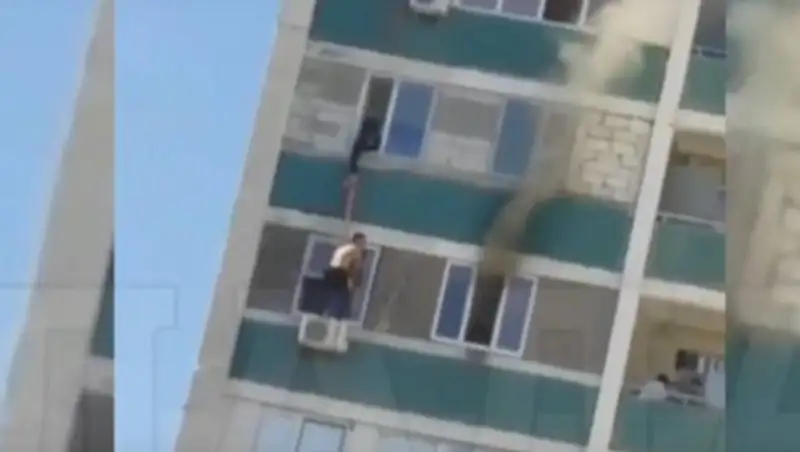 Мужчина вытащил тросом отца и ребенка из горящей квартиры в Актау