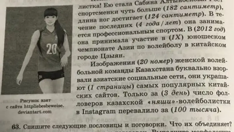 Издательство «Атамура», которое выпустило в этом году учебник русского языка для 7 классов, объяснило появление «няшки» Сабины Алтынбековой в одном из заданий в ответе на официальный запрос МИА «Казинформ».