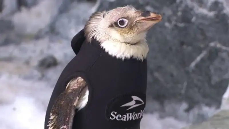 Один из обитателей американского развлекательного парка SeaWorld, самка пингвина Адели начала терять перья. Для возвращения птице нормального теплообмена был сшит специальный костюм, сообщает National Geographic Россия.